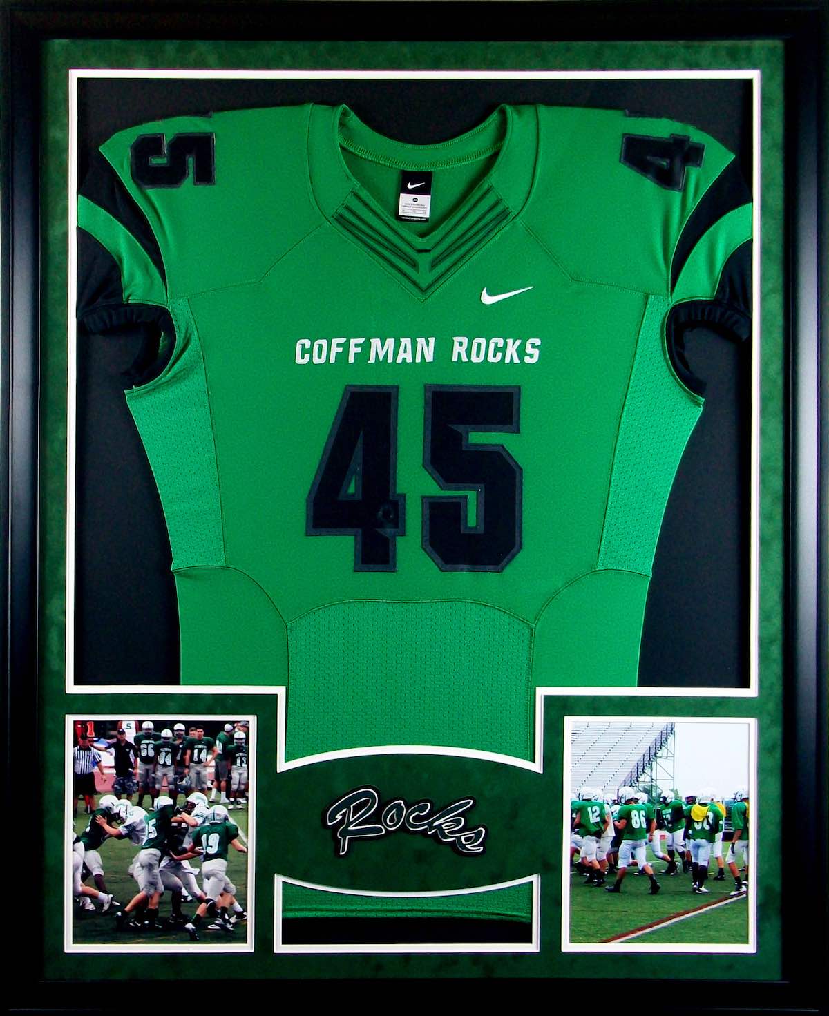 See your high school team logo and jersey framed in our museum quality frames just like we do for our other professional jerseys.